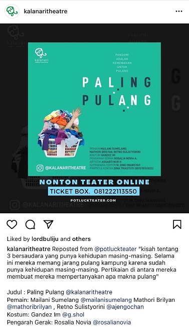 Semestinya, di tahun ini, kami memulai sebuah program yang kami rencanakan akan berjalan cukup panjang: penelitian dan pemanggungan sejarah teater Indonesia dalam beberapa seri. Program ini dimulai dari sebuah pertanyaan tentang bagaimana memanggungkan sejarah panggung yang membentang cukup panjang. Sebuah alur penelitian dan proses pewujudan ke atas panggung telah dirancang. Tentu saja ini adalah sebuah rancangan yang tak memperhitungkan akan adanya wabah sehingga ia mesti ditangguhkan ketika wabah melanda. Bagi Kalanari, sebagai sebuah lembaga yang dijalankan secara swadaya, penangguhan program semacam ini adalah kelumrahan, bagian dari proses berdialog dengan keterbatasan keadaan, waktu, ruang, dan dana.